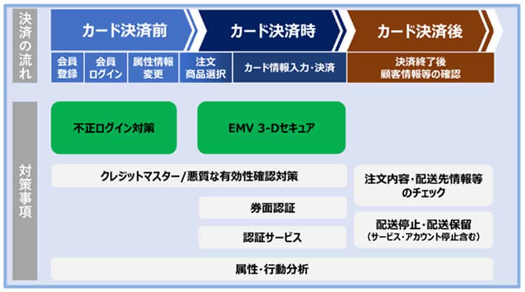 特にEC加盟店では、3-Dセキュアの導入、不審アクセスの監視、多要素認証の活用といった複数の対策を組み合わせることが推奨されています。