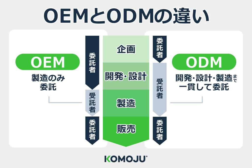 - ODM(Original Design Manufacturer):メーカーが企画・設計から担い、発注者は完成品を自社ブランドで販売する